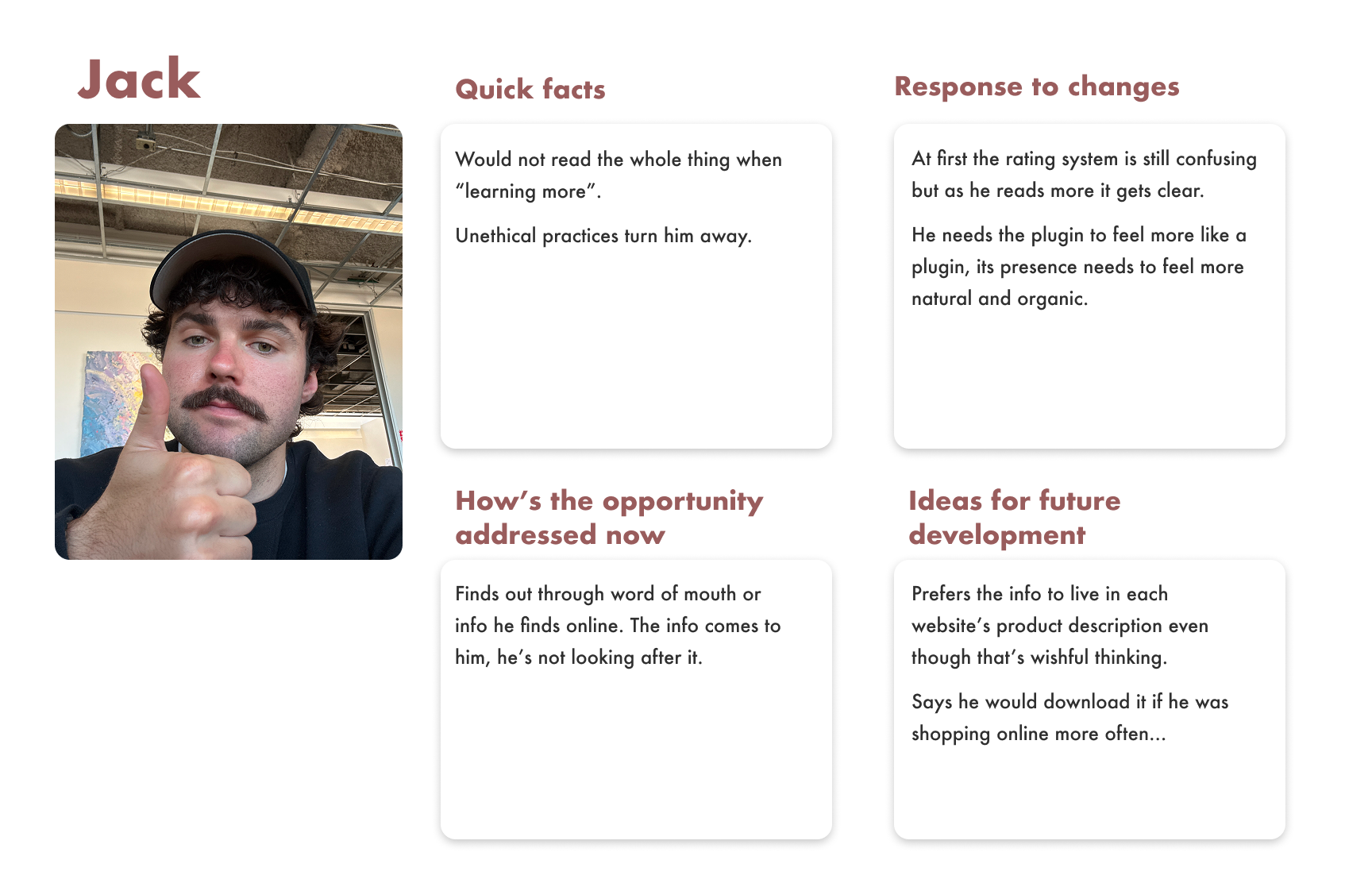 This project taught me that designing for ethical shopping isn’t just about presenting information; it’s about meeting the right users at the right moment with the right tone.I learned how important it is to question not just whether a solution works, but who it’s truly for. While the plugin proved effective in solving the problem it set out to address, it also revealed a key truth: